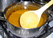 colocada en el fuego. Tome dos porciones y mezcle con un poco de Ghee este